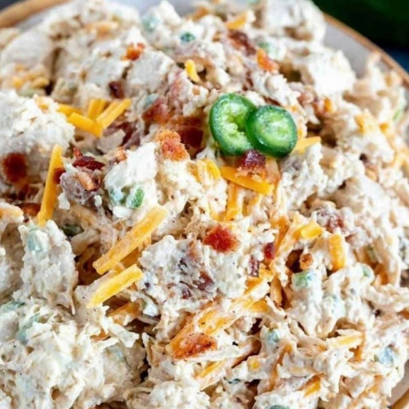 Shredded Chicken, mayo &cream cheese base with crumbled bacon, shredded cheddar, minced jalapeno, and ranch seasoning.